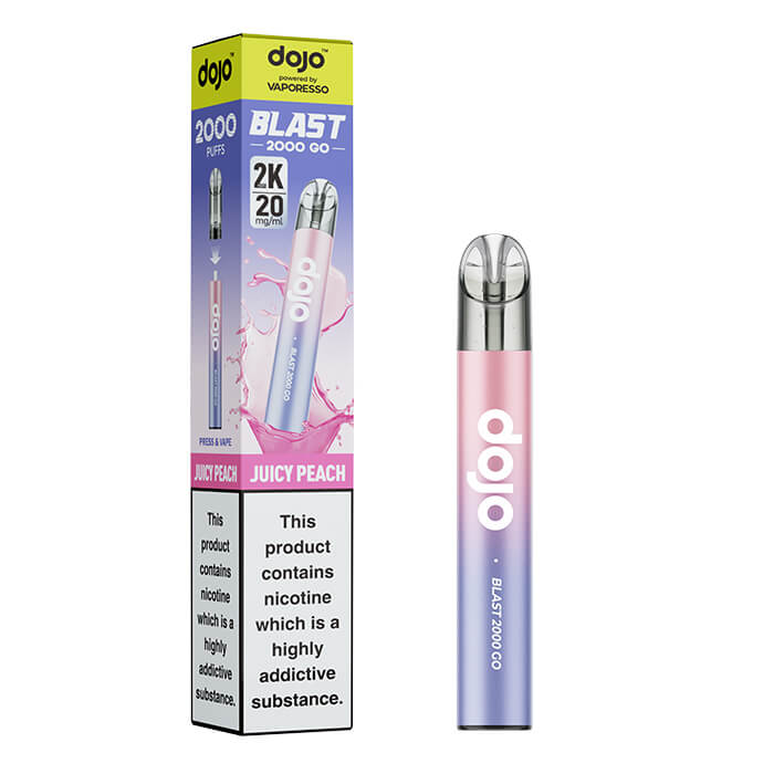 The DOJO Blast 2000 Go Transparent Prefilled Vape Kit offers a refined mouth-to-lung vaping experience powered by a robust 700mAh battery, delivering up to 2000 puffs on a single charge. Its inhale-activated mechanism ensures effortless operation, while the new 3-colour battery indicator provides clear status at a glance. Equipped with a visible prefilled pod containing 20mg nic salt e-liquid in a juicy peach flavour, this device balances satisfying hits with refreshing taste. Convenient Type-C charging (cable not included) ensures rapid power replenishment, making it a reliable and discreet choice for on-the-go vaping.